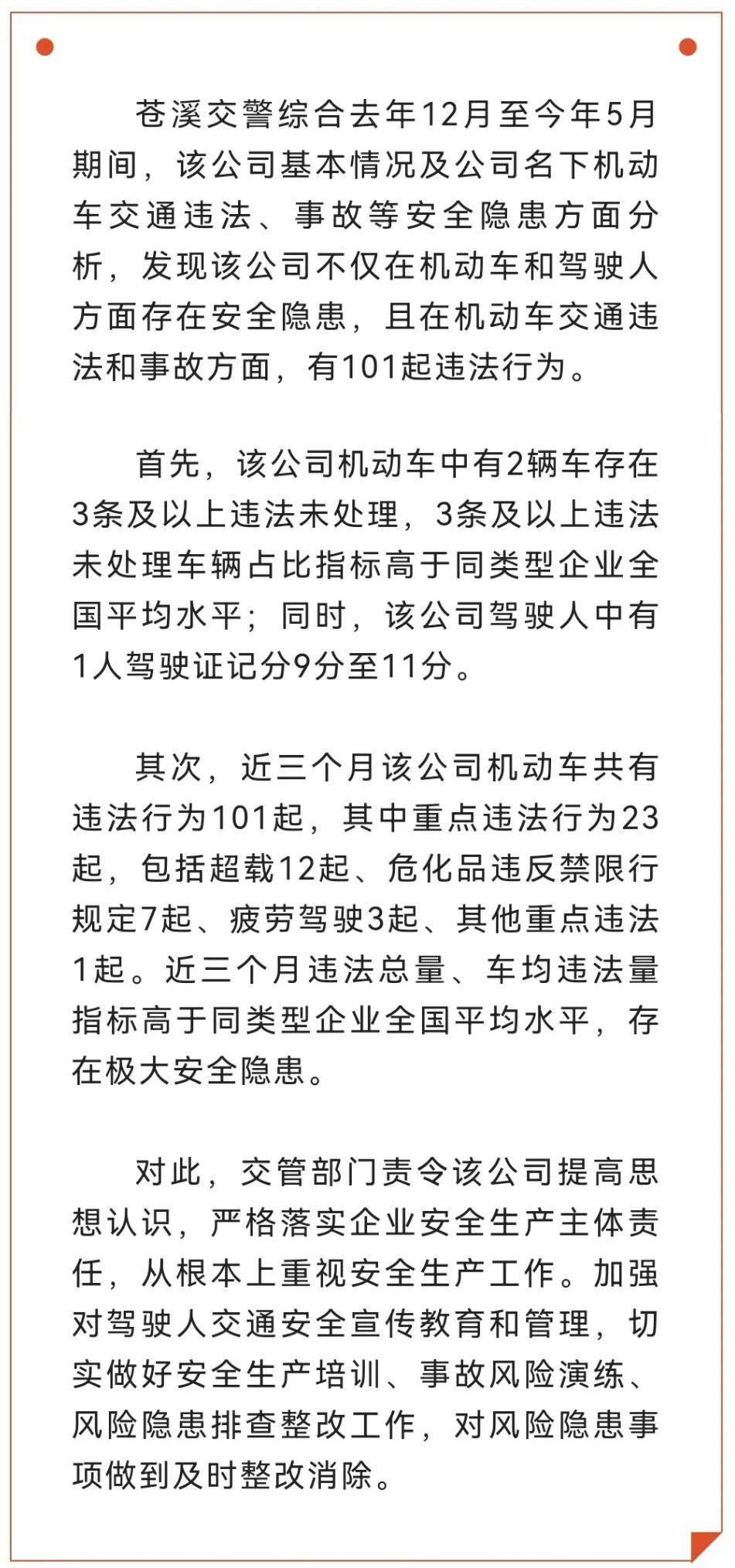 为进一步加强危险化学品道路运输安全管理,从源头化解道路交通安全隐患,苍溪公安交警日前通过公安交通管理大数据分析研判发现,广元市四通物流有限责任公司存在高风险。7月3日,记者从该市公安局交警支队获悉,日前苍溪交警公开曝光了该企业存在的多重安全隐患。
