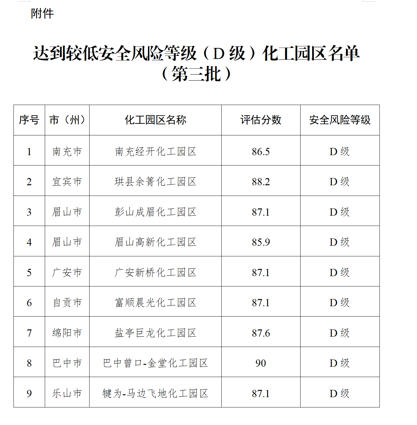 附件:达到较低安全风险等级(D级)化工园区名单(第三批)