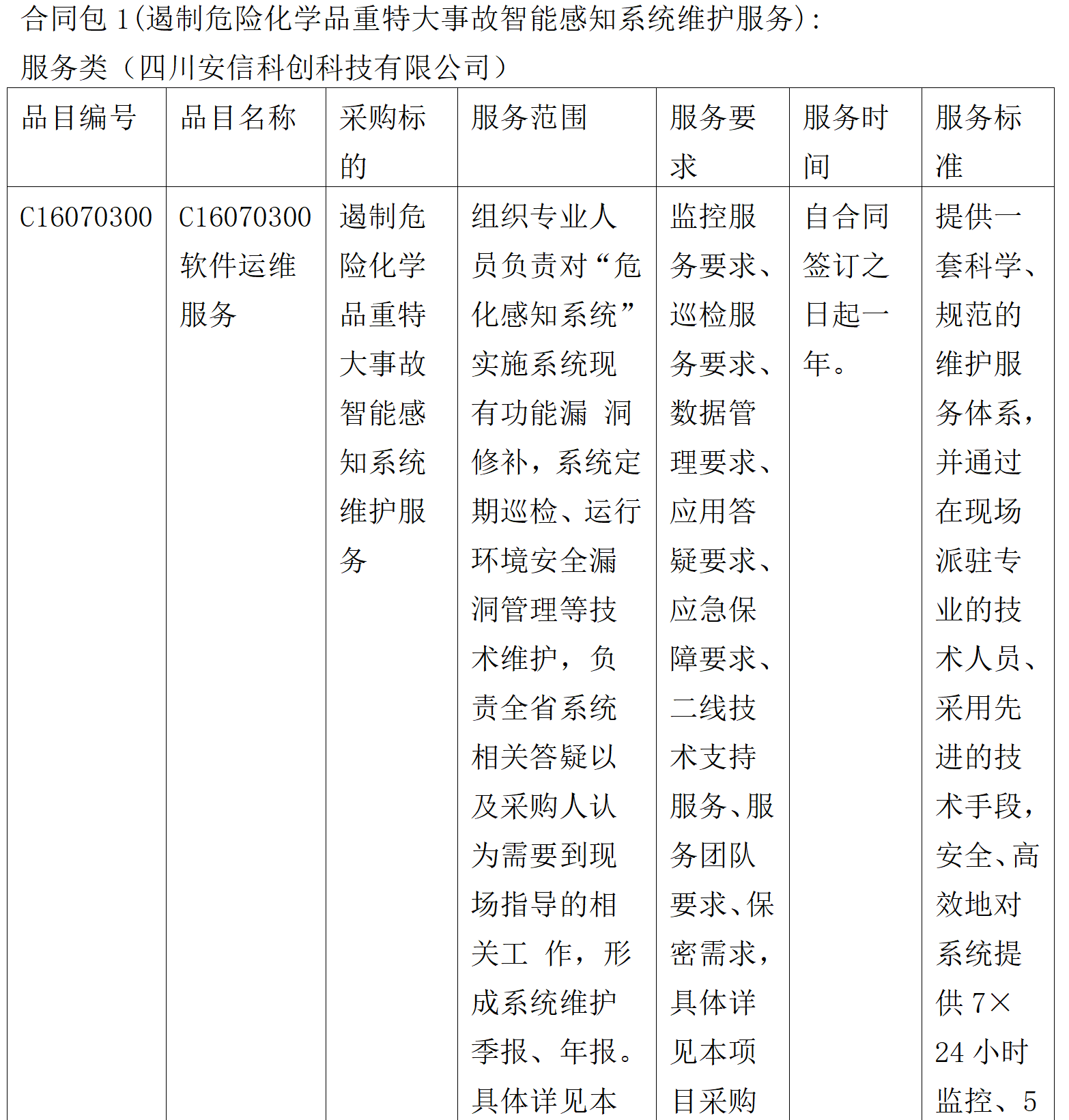 二、项目名称:遏制危险化学品重特大事故智能感知系统维护服务项目