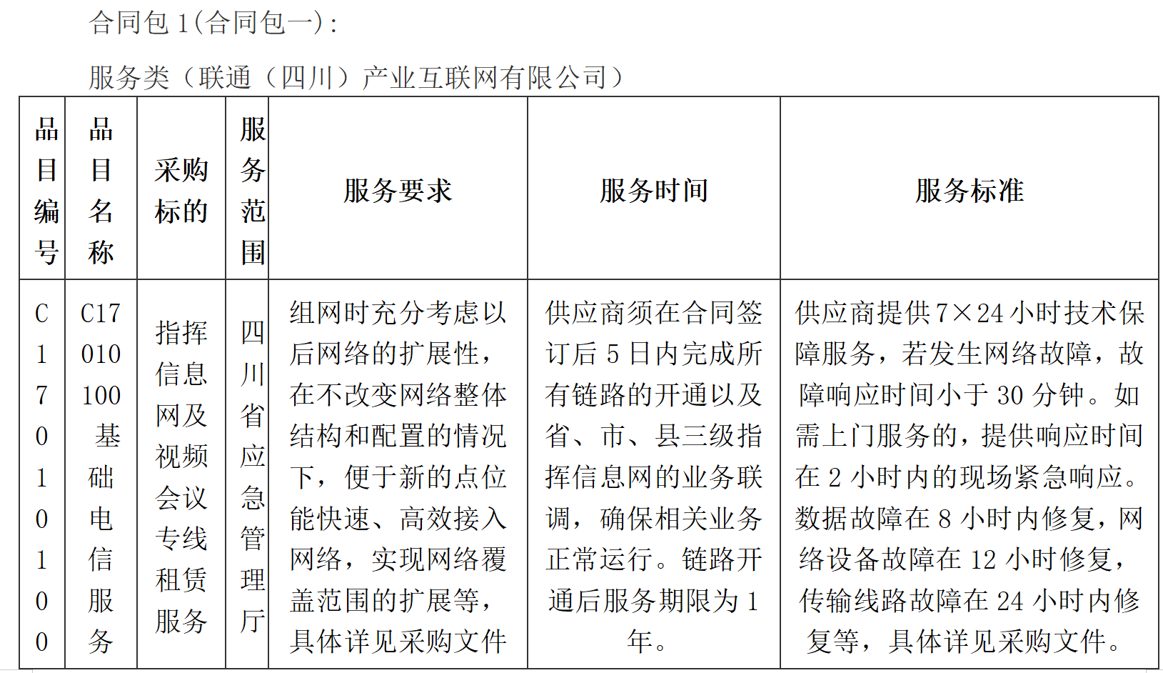 3、采购品目编号及名称:C17010100 基础电信服务。