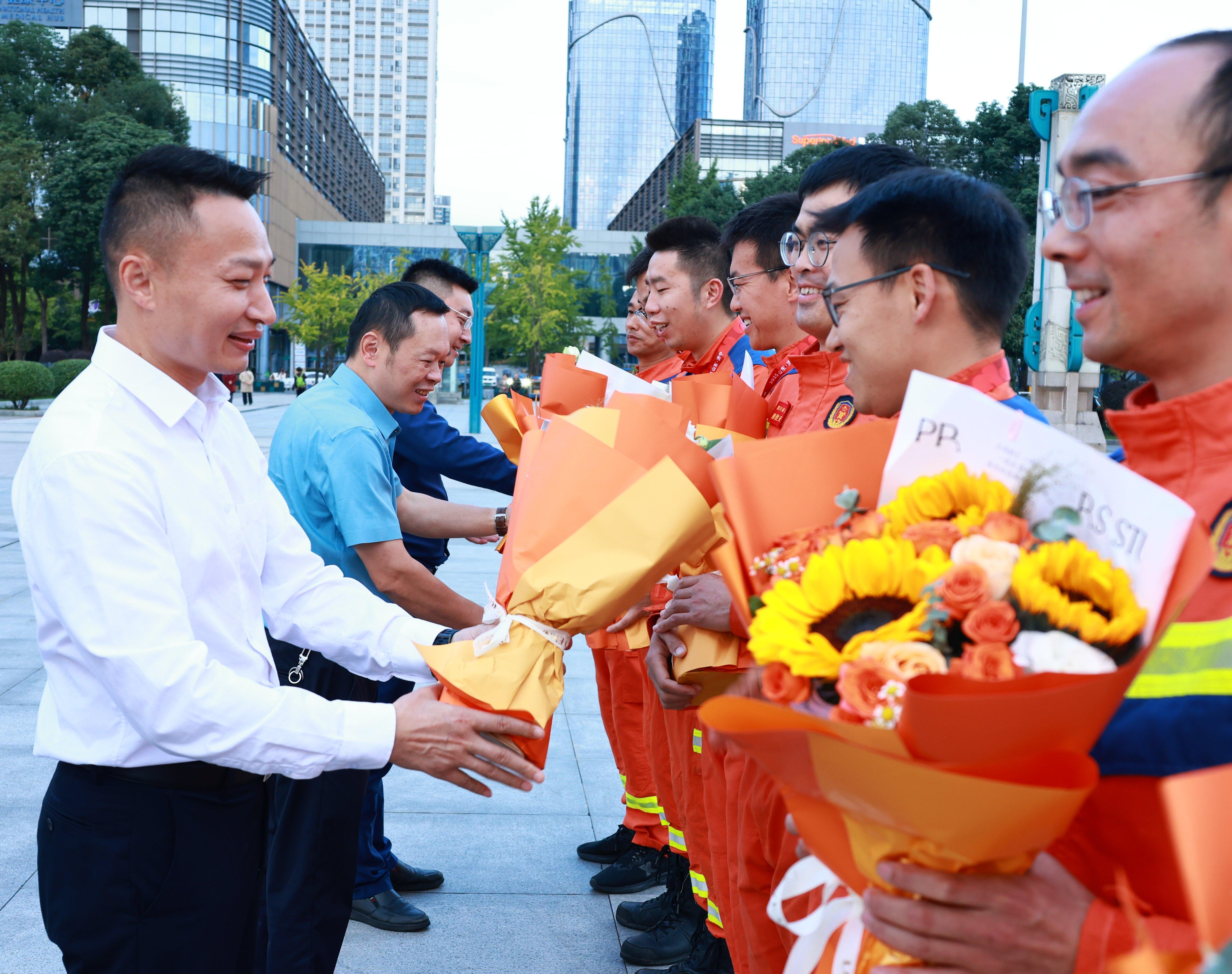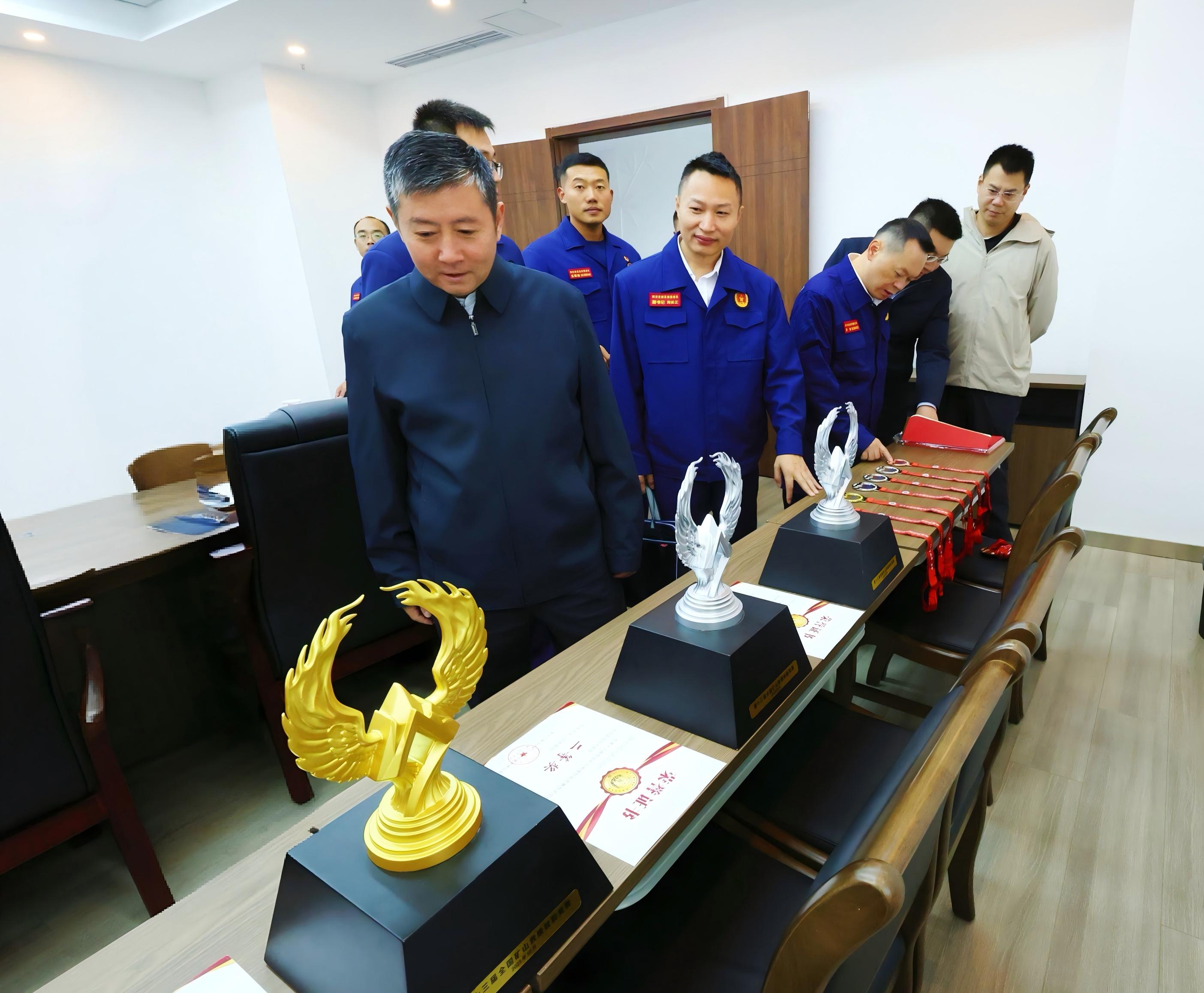 近日,在第十三届全国矿山救援技能竞赛中斩获团体全能第一名的国家矿山应急救援四川排水队(四川省应急救援总队),结束征程载誉回川。省森林草原防灭火指挥部专职副指挥长张宏伟到总队亲切慰问全体参赛队员,高度肯定队员出色表现。