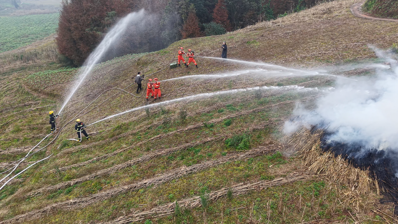 “火情已确认!坐标北纬30°08′,东经102°52′!”随着前方指挥部的指令下达,属地救援队伍立即开展行动。在火场抢险处置环节,救援队员精准操控灭火装备,对准模拟火情点位快速扑灭火源,整套动作行云流水,高效检验了日常演训成果和装备实用性能。