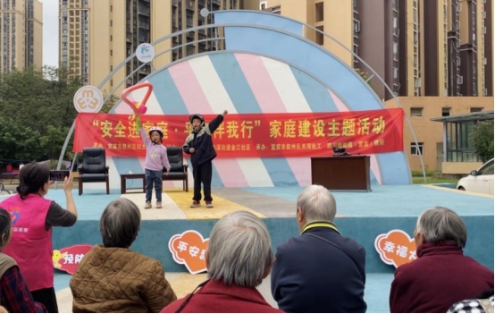 家庭是安全宣传“五进”的核心末梢。近日,叙州区金江社区童趣乐园文化广场举办“安全进家庭·平安伴我行”主题活动。活动通过家庭安全情景剧《家有小卫士》进行生动直观的知识科普,家长与孩子演绎居家用电、儿童防护等常见隐患及处置方法。随后的有奖互动问答环节更是精彩,让大家在轻松氛围中巩固安全知识。